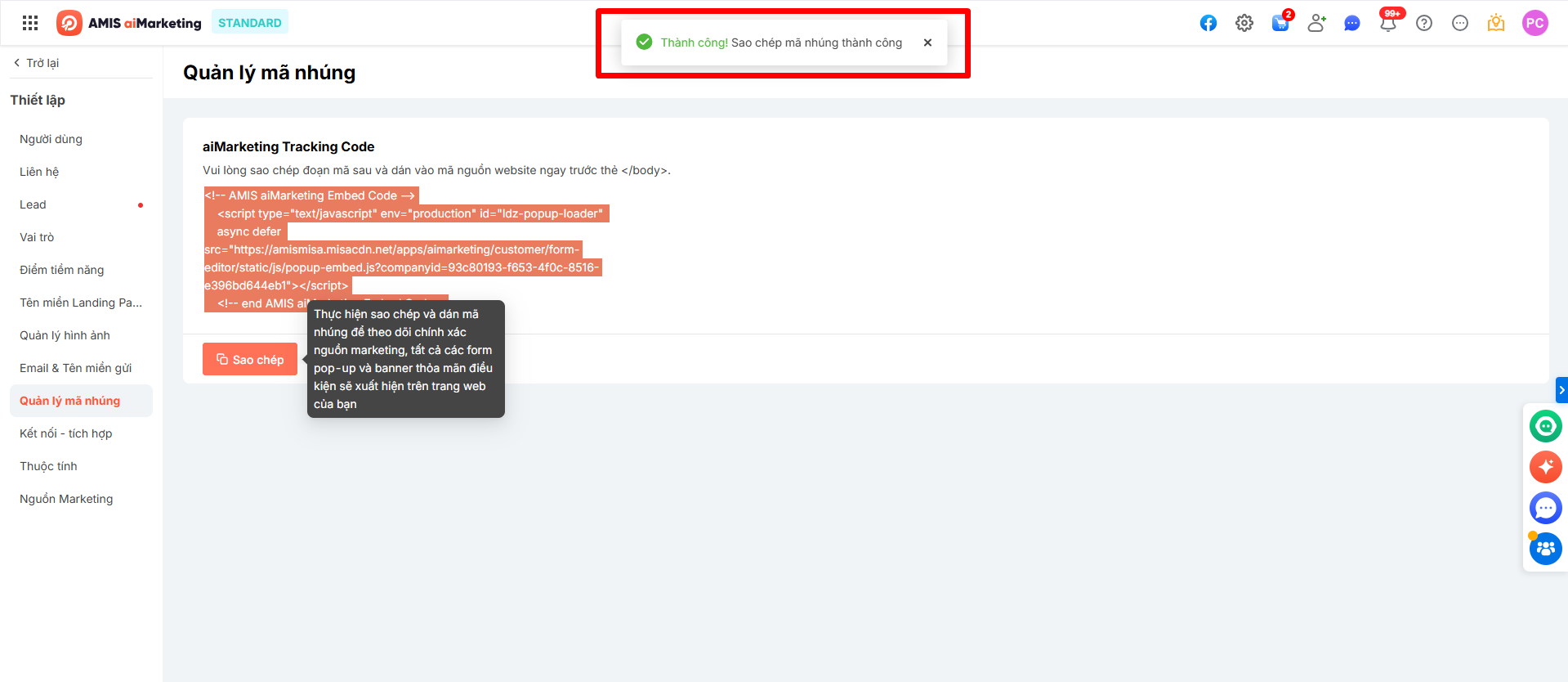 - Khi đó, các liên hệ trên aiMarketing khi truy cập vào website có gắn mã nhúng này sẽ được theo dõi và ghi nhận hoạt động.